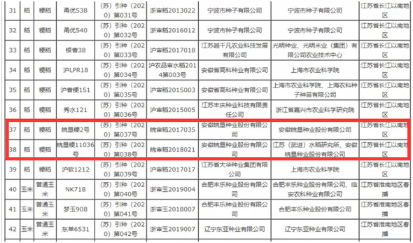 2020年3月6日,江蘇省農(nóng)業(yè)農(nóng)村廳第1號(hào)公告公布,由安徽皖墾種業(yè)股份有限公司育成的皖墾粳2號(hào),安徽皖墾種業(yè)股份有限公司和江蘇武進(jìn)水稻研究所合作選育的 皖墾粳11036符合備案要求,通過引種備案。